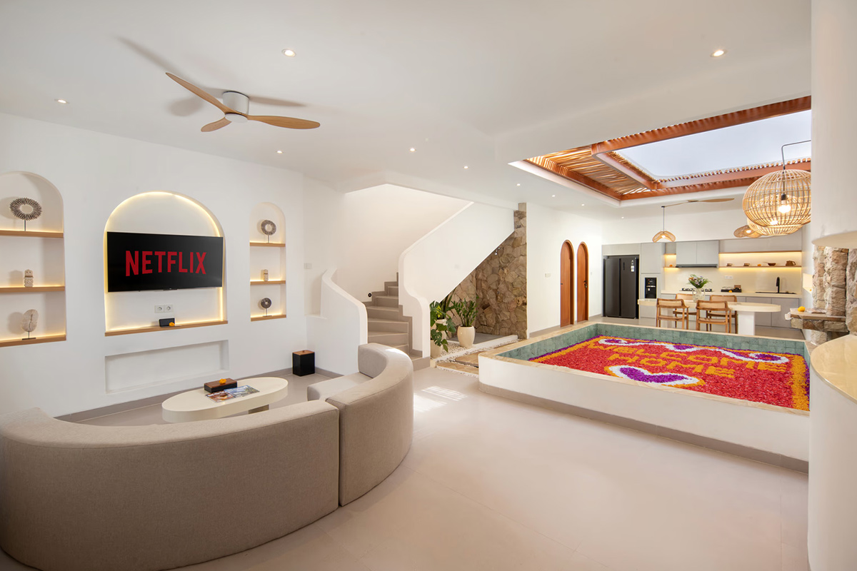 Berlokasi di pusat Canggu, Onnea menghadirkan villa dua kamar dengan nuansa “chic yet homey” sehingga cocok untuk liburan keluarga. Memiliki desain Scandi Coastal yang didominasi warna putih dan kayu, memberikan suasana nyaman dan menenangkan.