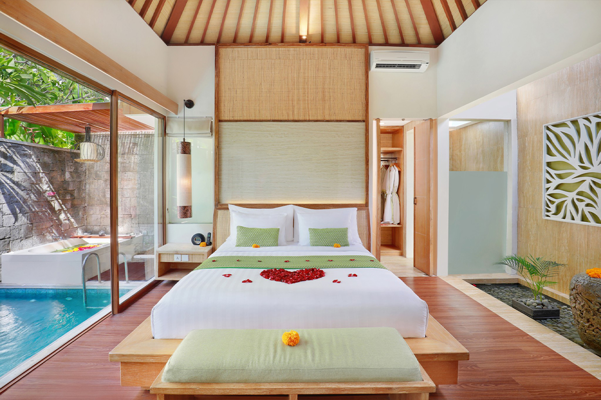 Jika wisatawan menginginkan momen intim bersama pasangan di Ini Vie Villa, mereka dapat memilih opsi royal one-bedroom villa with private pool and jacuzzi yang terasa jauh lebih romantis.
